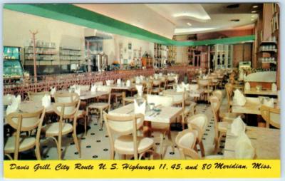 Meridian Mississippi Ms Interior Davis Grill Open All Night Roadside Postcard Ebay